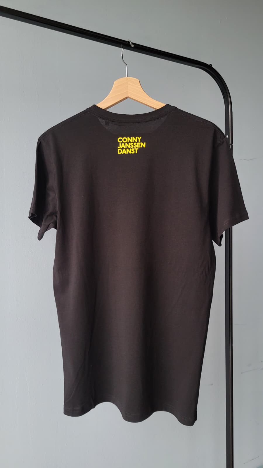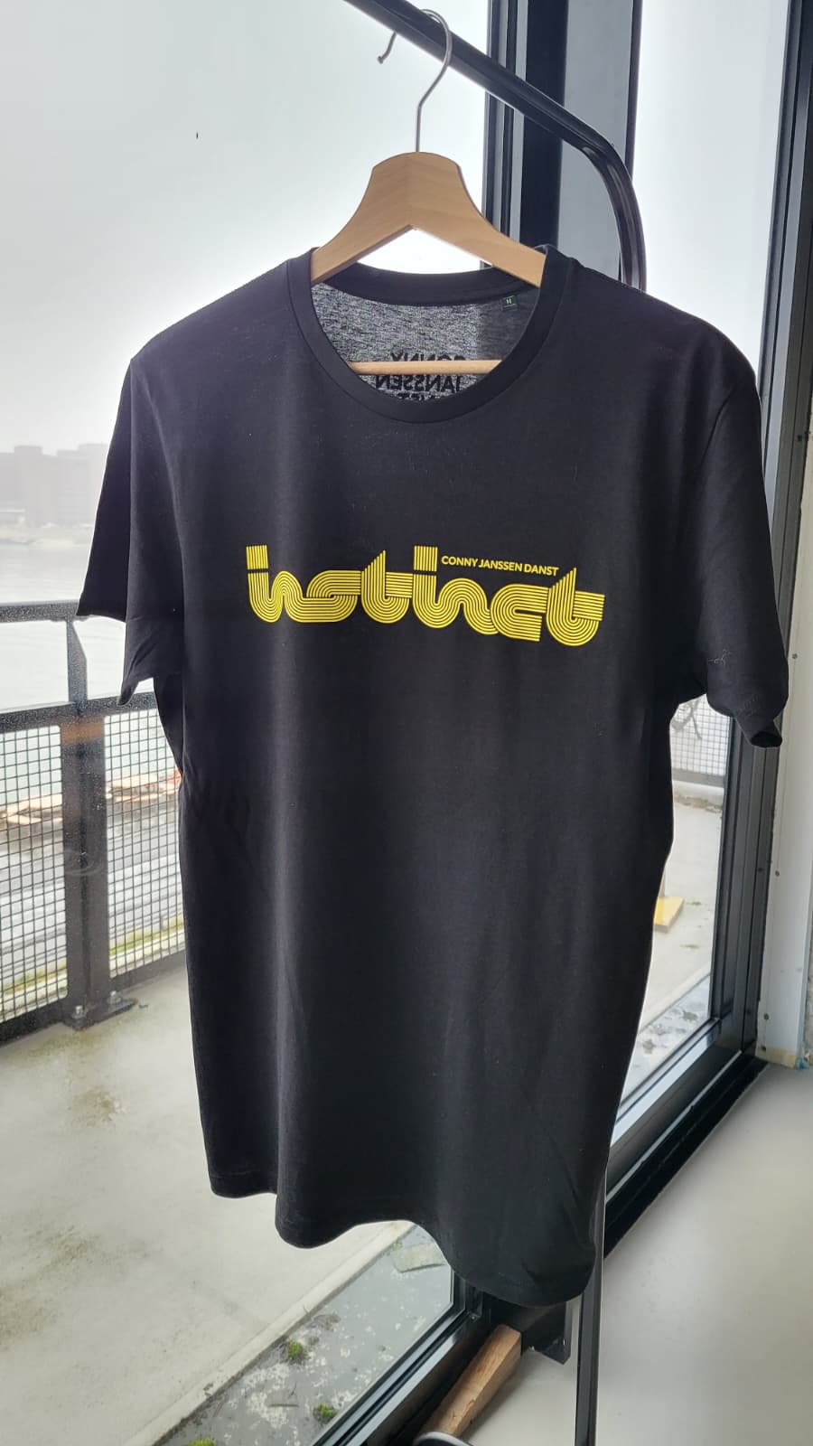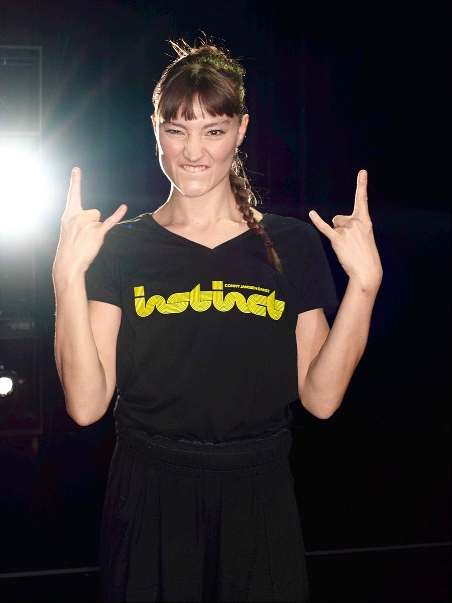Het T-Shirt bij de voorstelling INSTINCT.Kleur: zwart met fel geel.Beschikbaar in: